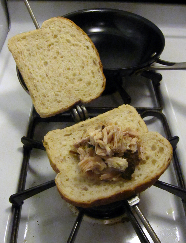 Now after all this, we had quite a few leftovers. Boy and I were the lucky recipients of quite a bit of turducken, stuffing, potatoes, and more. So of course, we had to make a Toas-Tite!