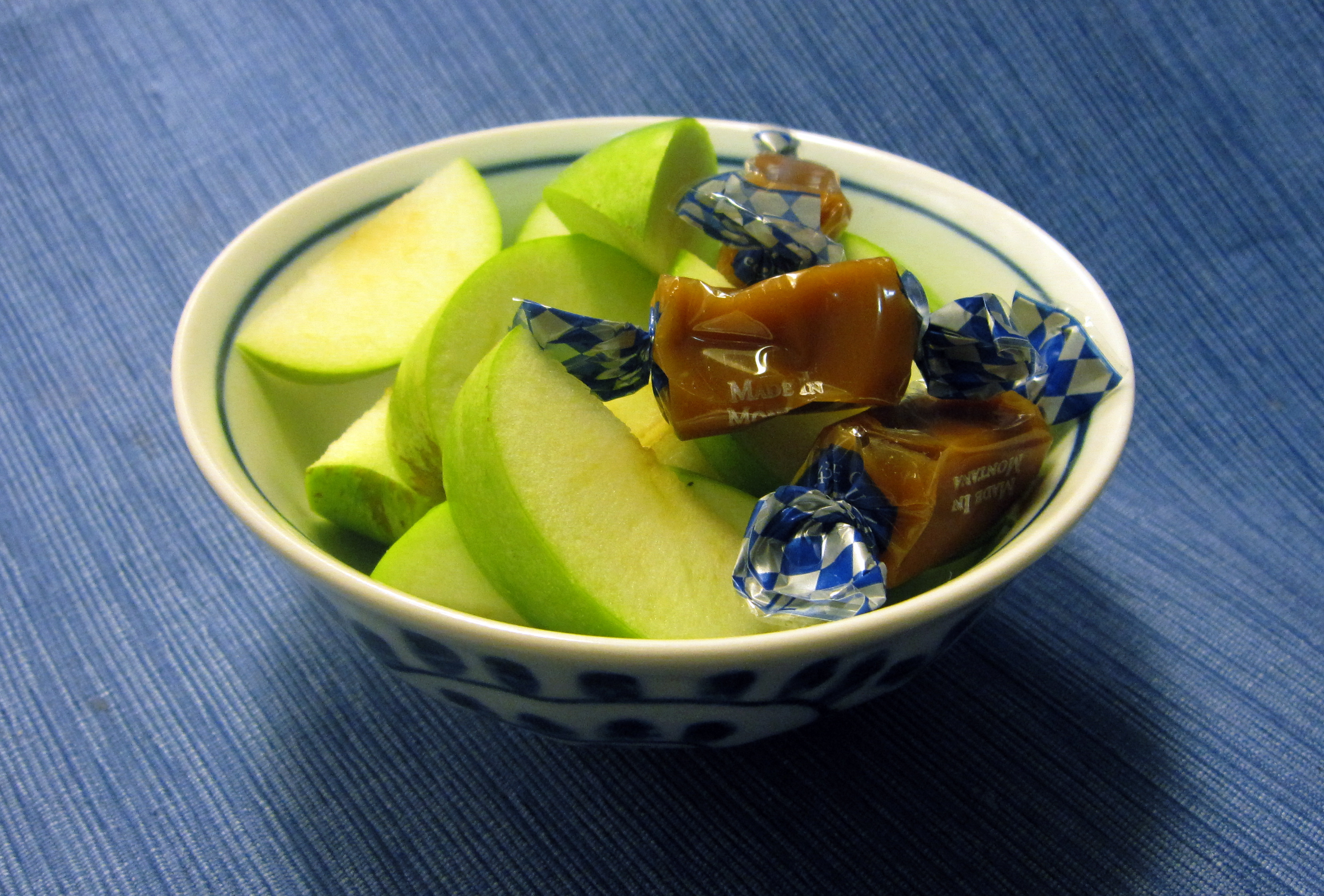 To celebrate the coming of fall and the approaching All Hallow’s Eve, we decided to kick off the season with a caramel apple Toas-Tite. Warm and delicious, the melting of the caramel blending with the sweetness and crunch of the apple is exactly what I want on a crisp autumn evening. In a Toas-Tite, you can enjoy everything wonderful about a caramel apple, without the mess of eating one off a stick. Not to mention, the Toas-Tite version of a caramel apple teeters on the edge of apple pie – what could be better than that?