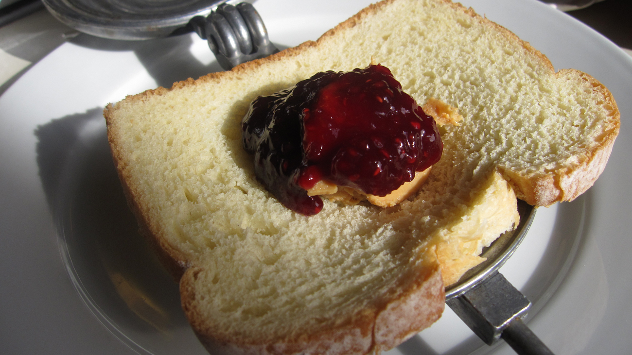 In the morning, we cooked up 3 Toas-Tites. Two peanut butter and jelly sandwiches…