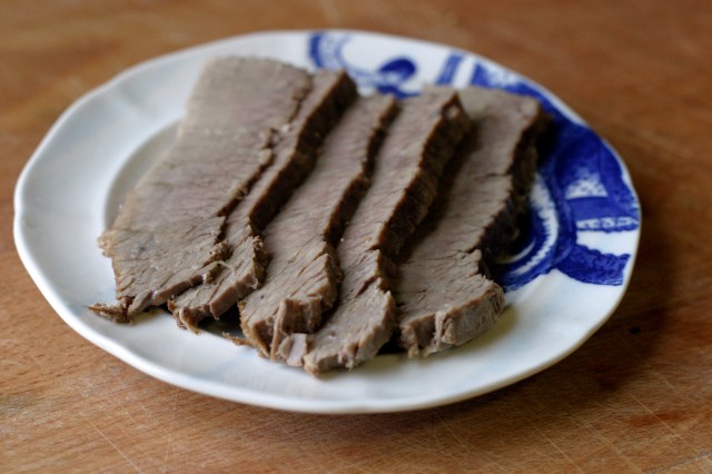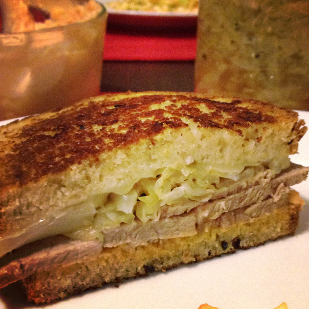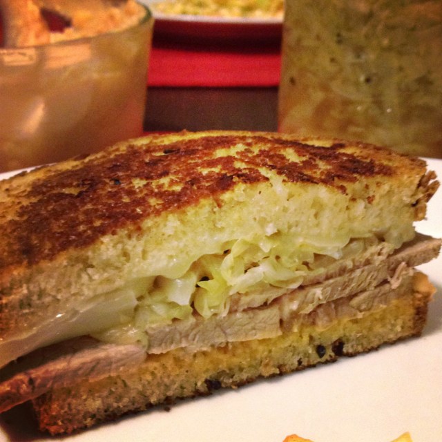 Generally, the meat was fantastic in the sandwich. That said, if I had been eating it by itself, I would have been disappointed that it wasn’t more moist and the flavor wasn’t quite as punchy. In the sandwich though, it was great. As Sodium Girl’s Boy pointed out, the stars of the sandwich flavor-wise are really the sauerkraut and the Thousand Island dressing. Next time, we’re going to try it in a slow cooker to see if that keeps the meat more tender.